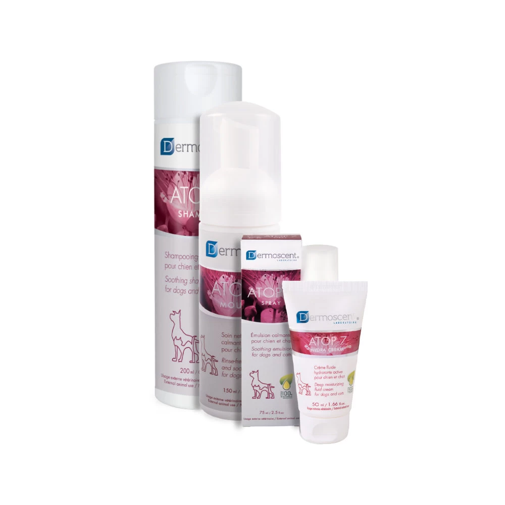 De huid vormt een afscheiding tussen het lichaam en de buitenwereld. Een belangrijke functie van de huid is het lichaam beschermen tegen de zon, koude temperaturen, wind en zelfs het buiten houden van schadelijke organismen en stoffen. Daarnaast houdt de huid vocht binnen. Een normale/gezonde huid kan dit zelf, maar wanneer de huidbarrière is verstoord kan de huid rood en/of droog worden. De huid heeft dan extra verzorging nodig. Dermoscent Atop 7 biedt deze extra verzorging. Natuurlijk is het ook belangrijk om de exacte oorzaak van de gevoelige huid te achterhalen, bijvoorbeeld in overleg met de dierenarts.