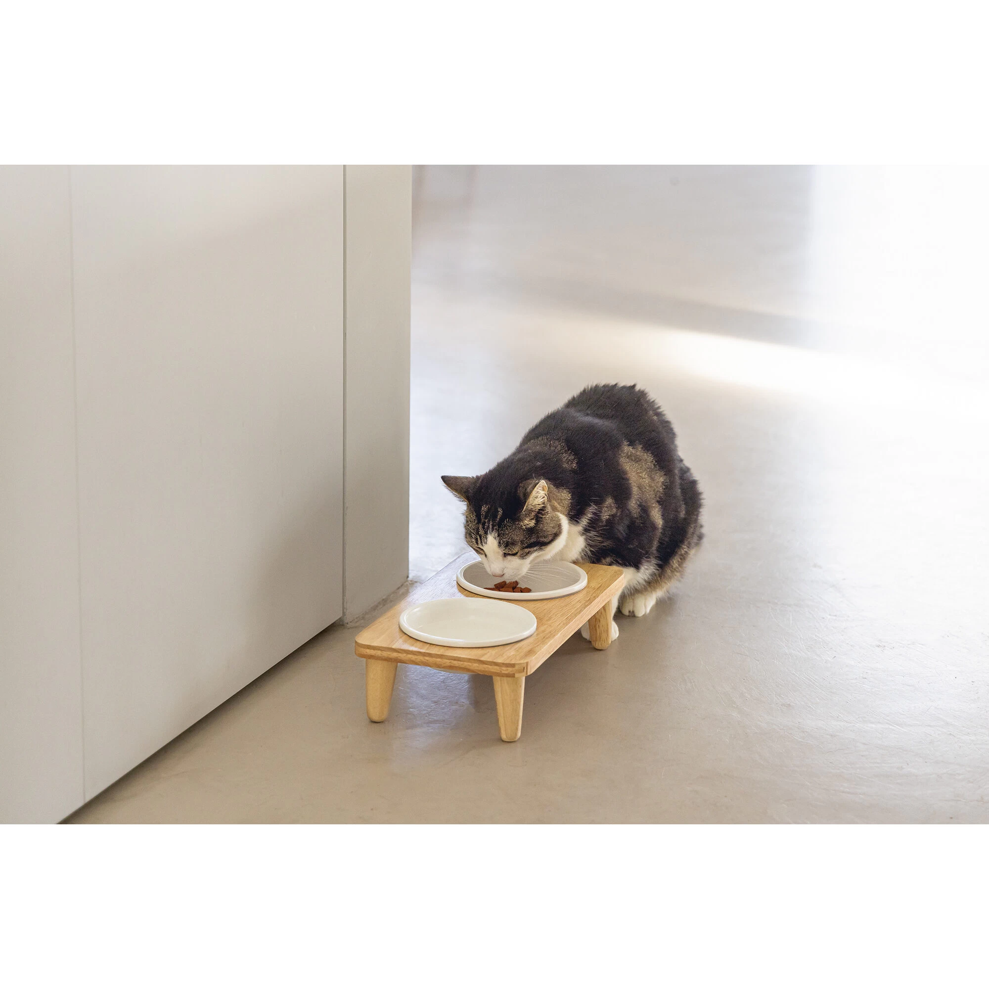 Geef uw lieve kat een stijlvol diner met de Designed by Lotte Dinerset Djeha. De set bestaat uit twee keramieken bakjes en een houder. Wanneer de bakjes vies zijn, kunnen ze eenvoudig gereinigd worden in de vaatwasser. Wat deze set echt bijzonder maakt, is het gebruik van rubberhout, waardoor u een prachtige natuurlijke uitstraling in uw interieur krijgt. Dinerset Djeha past perfect bij verschillende woontrends dankzij zijn tijdloze en natuurlijke look. En niet te vergeten, deze set is ook geschikt voor kleine honden, dus u kunt uw favoriete viervoeters samen laten genieten!