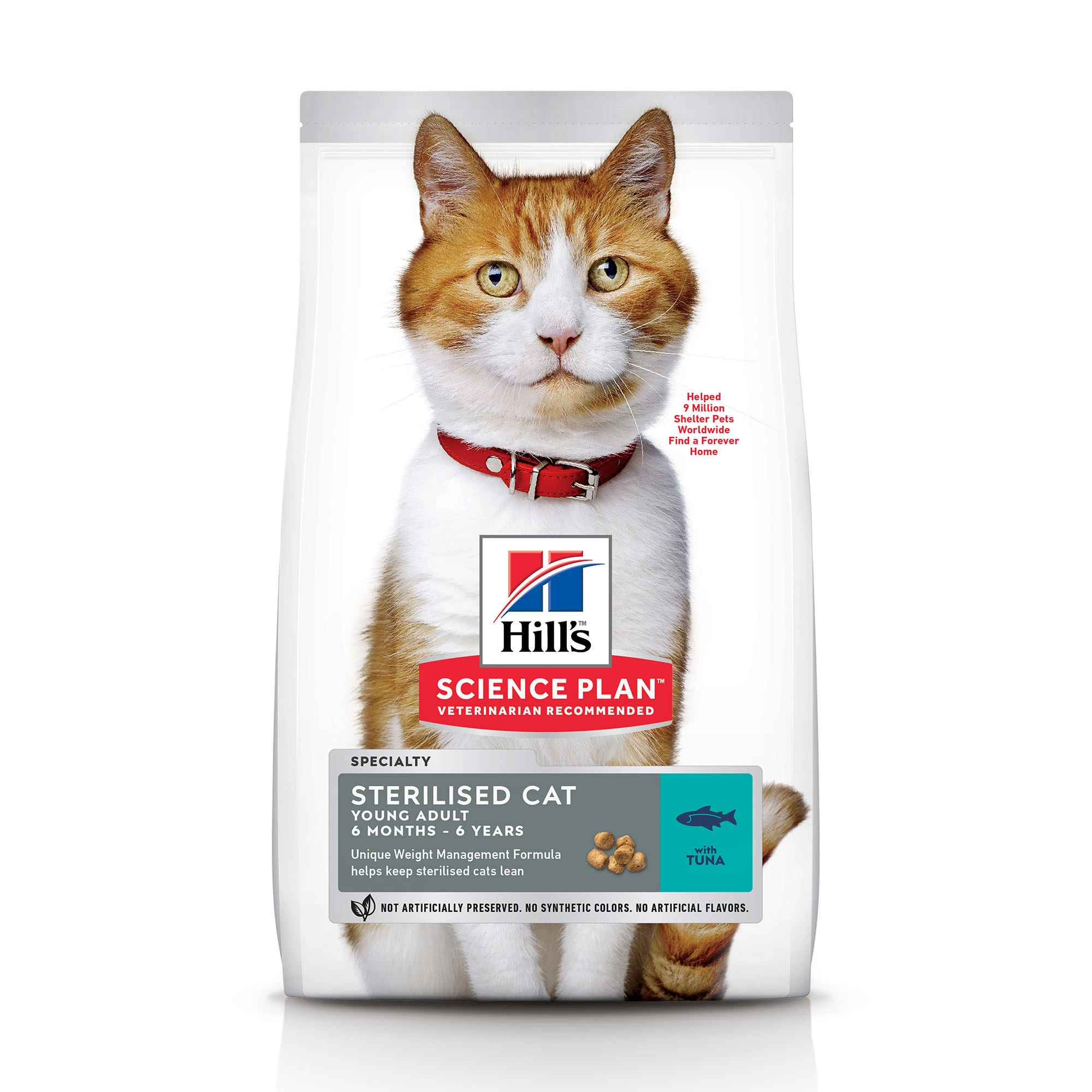 Hill’s Science Plan Feline Adult Sterilised is verkrijgbaar in verpakkingen van 300 gram, 1.5, 3 en 10 kg.